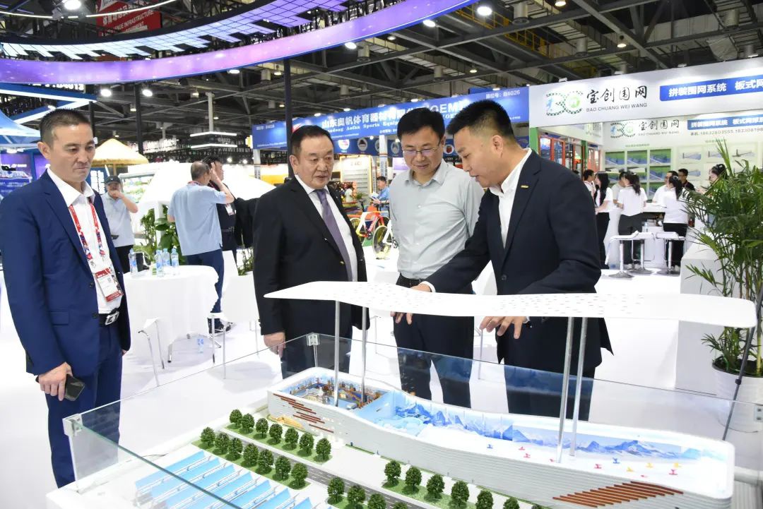未来四年,新的奥运周期,我们将积极抢抓产业发展机遇,继续在新材料、新技术端发力,加大科技创新力度,坚持产品质量安全和用户需求满意“两个标准”,贯彻“奥运品质全民共享”理念,积极建设“买全球、卖全球”的大平台,以品质和创新服务全球大市场;打造“赛、展、论、游、产、训”特色体育生态,为全球用户提供“规划、设计、集成、制造、建设、运营、服务”一站式解决方案,为世界体育事业的繁荣发展贡献力量。