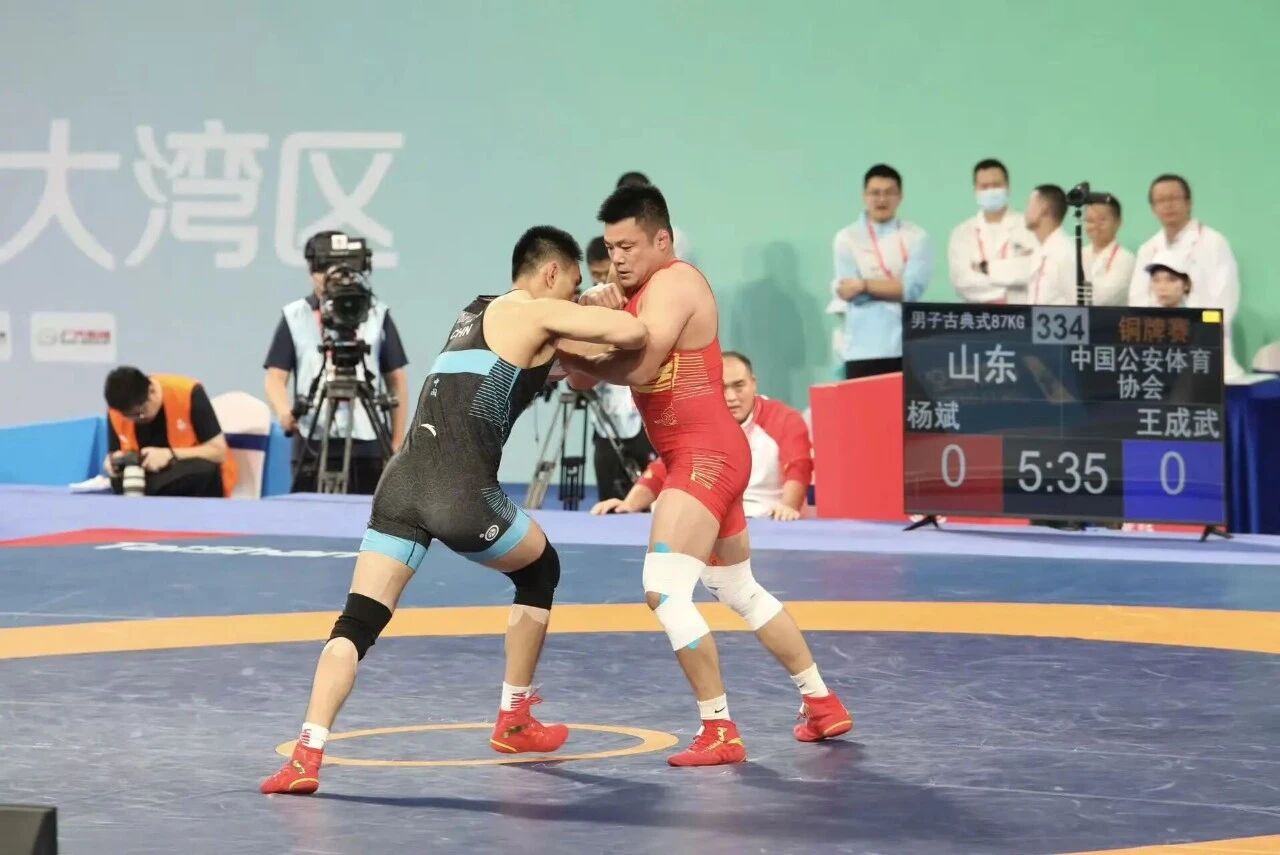 如果说金牌是竞技体育的勋章,那么赛场上的坚守与传承,便是体育精神的灵魂。36岁的杨斌,身兼山东省古典式摔跤队教练与运动员双重身份,已是连续征战五届全运会的“赛场常青树”。他以年龄不占优的“高龄”对抗一众年轻选手,最终在古典式摔跤87公斤级决赛中摘得铜牌。